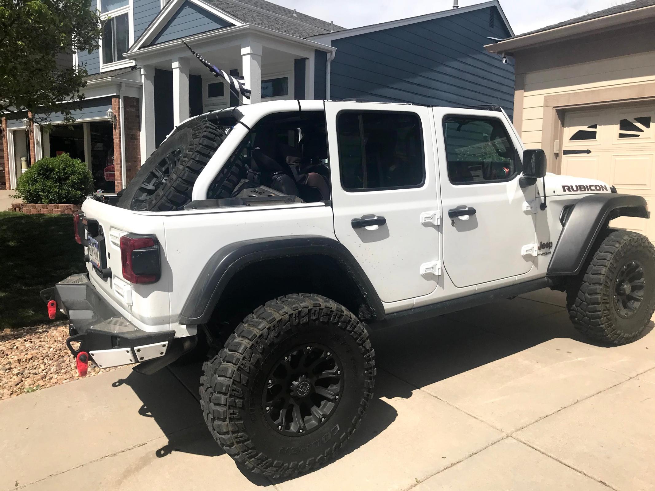 The GateKeeper Tire Carrier in the back of a JLU is capable of handling up to a 38 Inch tire with no other modifications to the Jeep being necessary. Larger tires can still be accommodated up to a 40 Inch.