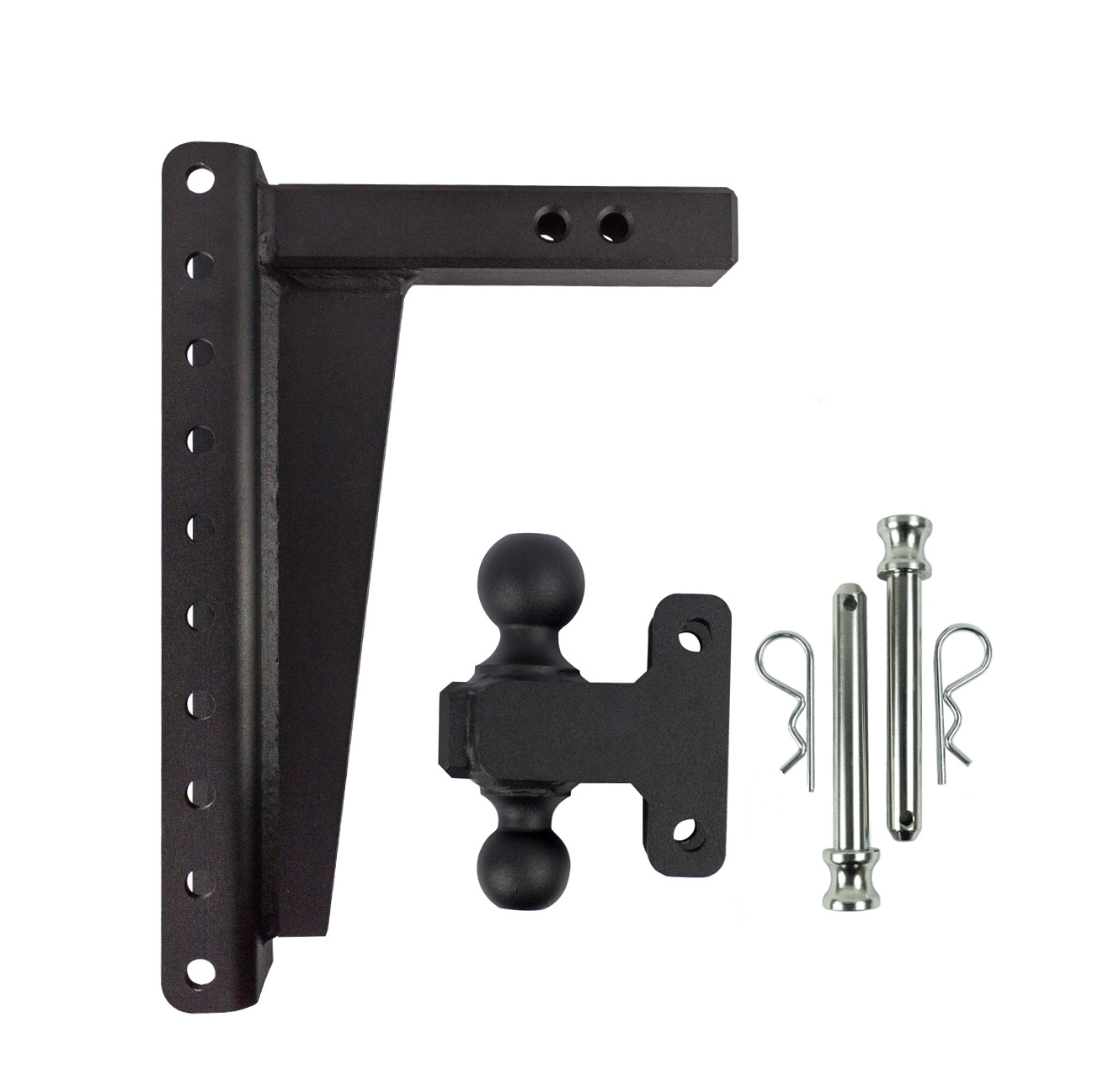 The BulletProof 2.0 inch Heavy Duty 14 inch Drop or Rise Hitch is unlike any of the competitors' products. This amazing hitch does the work of 10.