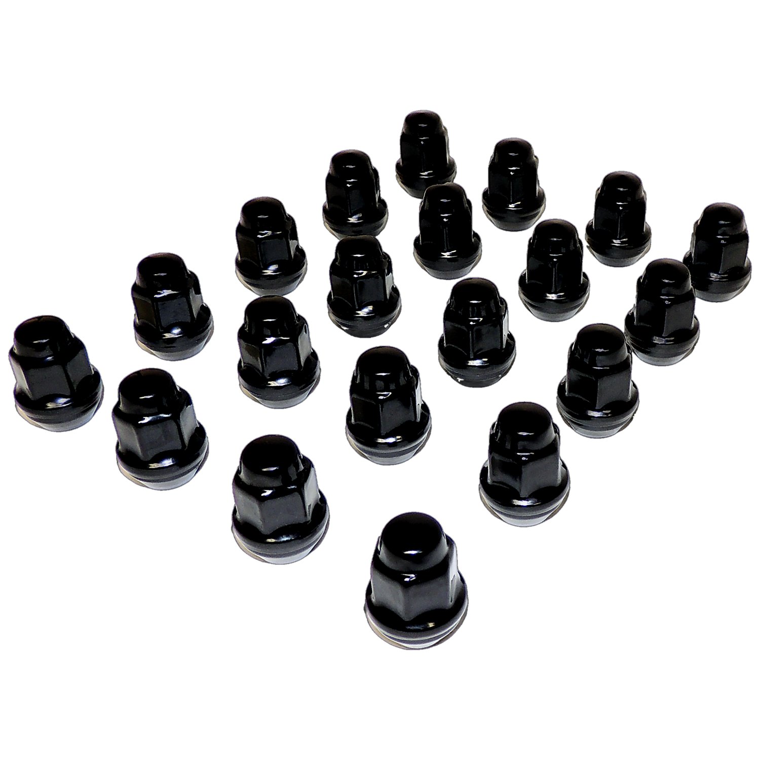 20 Piece Lug Nut Kit for Select 97-18 JK, TJ, YJ Wranglers, 93-10 WK, WH, WJ, WG ZJ, WG Grand Cherokees, 06-10 XK XH Commander, 02-12 KK, KJ Liberty, 84-01 XJ Cherokee and 86-92 MJ Comanche Models (1/2''-20, Black Capped)