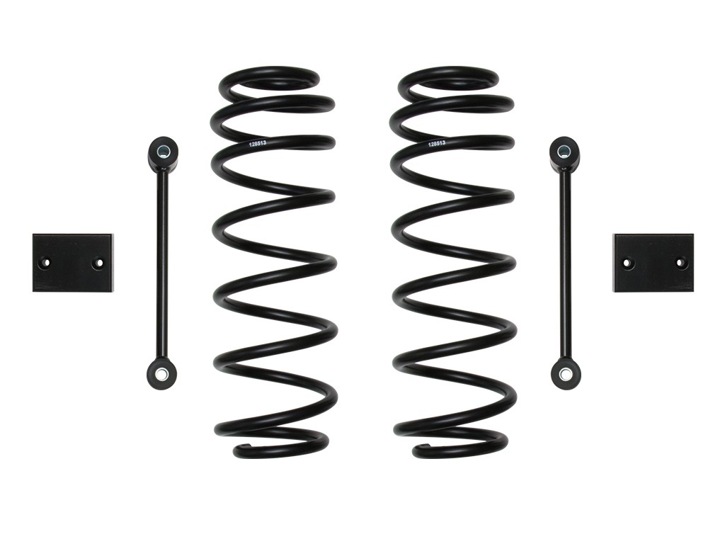 The Dynatrac Jeep Wrangler JL coil springs provide 3 inch of lift height (based on a factory equipped 4-door Rubicon JL) and feature a dual rate design. The dual rate design allows for a softer initial rate for superb on road comfort and a firmer secondary rate that increases during compression for excellent bottoming resistance and off-road performance.