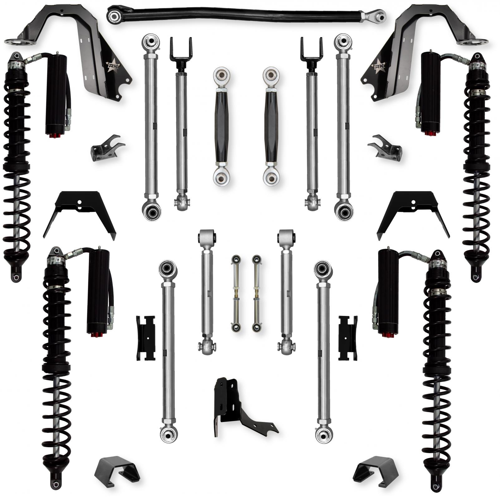 The Rock Krawler 3.0 X-Factor Pro Coilover No-Limits Mid-Arm System is specifically designed for Rubicon owners who want a complete system, bolt-in installation, and the best articulation of any mid-arm kit on the market. All 8 control arms are made from solid 7075 Aluminum, and come standard with all benefits of X-Factor built right in.