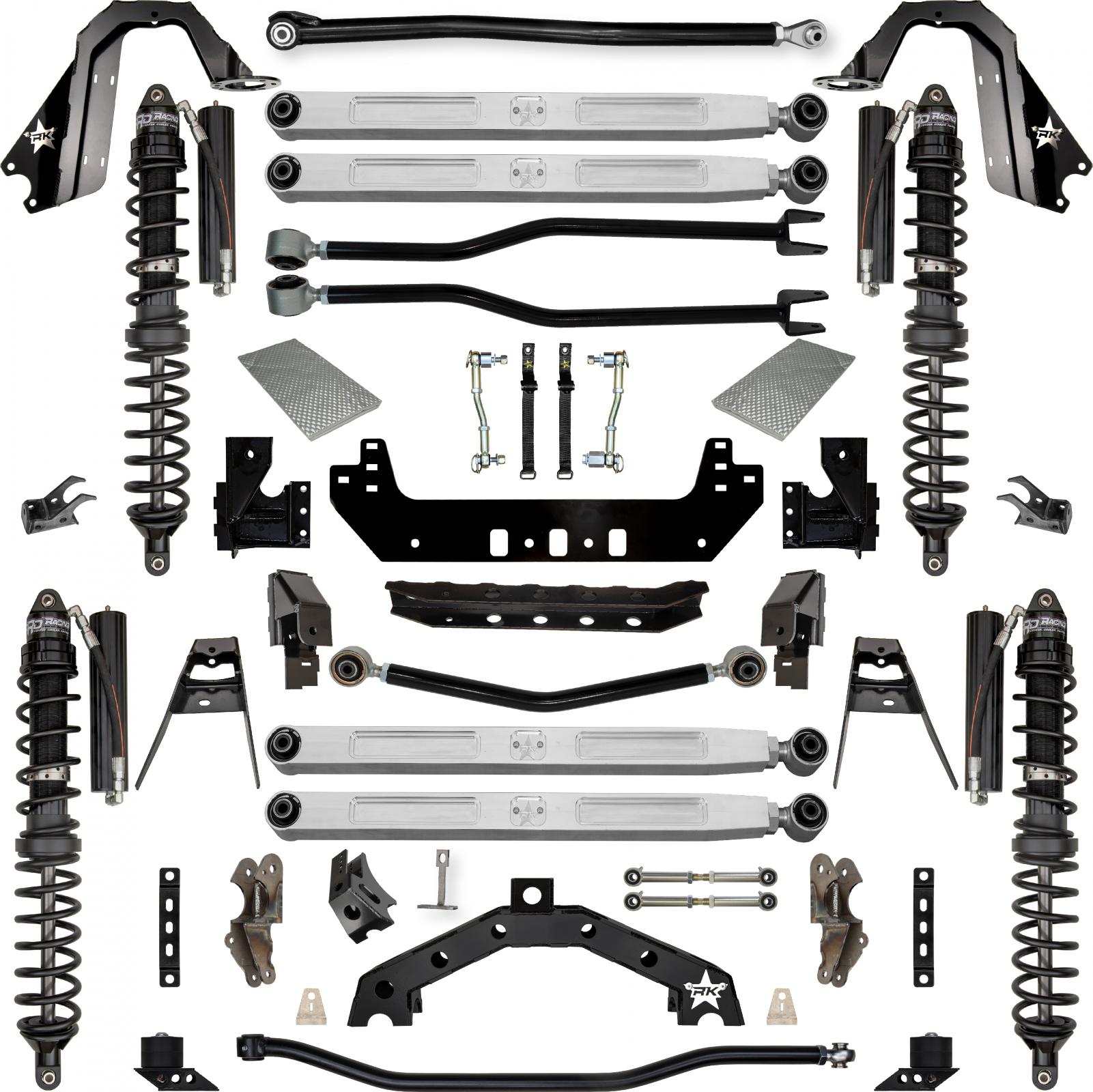 The combination of a full high clearance 4-link long arm front suspension and high clearance independent 3 link rear long arm suspension lets you dominate the streets and the trails. The billet No-Limits front sway bar end links pair amazingly well with the factory Rubicon E Disconnect ensuring bind free suspension travel in the roughest of terrains.
