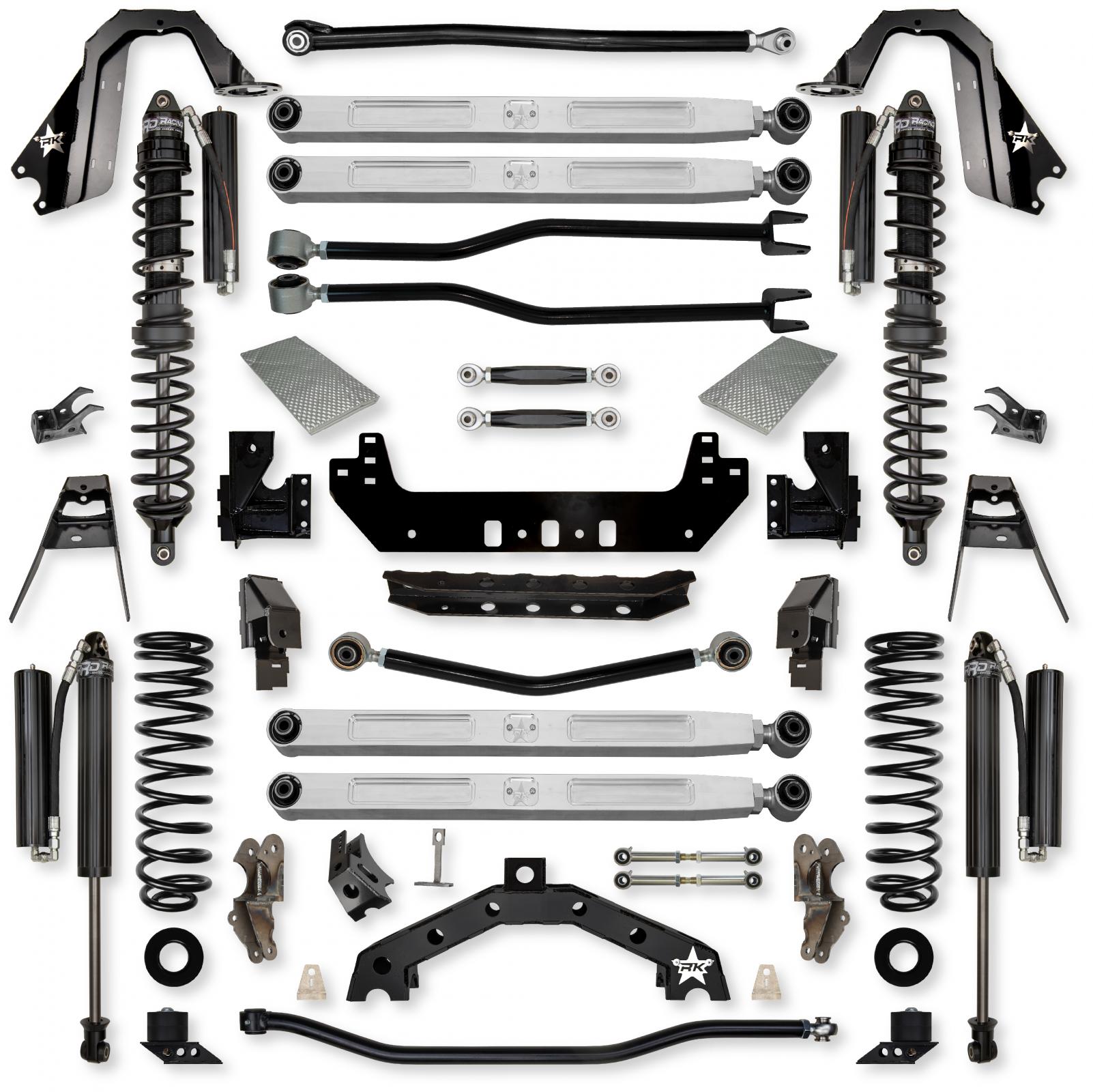 The combination of a full high clearance 4-link long arm front suspension and high clearance independent 3 link rear long arm suspension lets you dominate the streets and the trails. The billet No-Limits front sway bar end links pair amazingly well with the factory Rubicon E Disconnect ensuring bind free suspension travel in the roughest of terrains.
