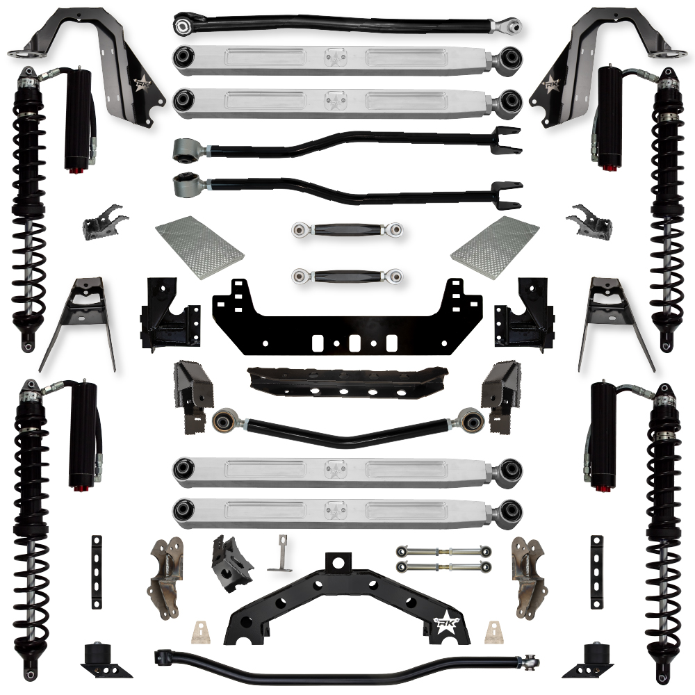 The Rock Krawler 3.5 Adventure - X2 Pro Elite Coilover No-Limits Long-Arm System is the ultimate in compromise between daily driver/hard core off-roader. The PRO Elite signifies you are entering the realm of PB&J (Pure Beef AND Jealousy) by purchasing a system that is outfitted with 4 Billet Aluminum CNC Machined Service Free lower control arms in a long arm length!