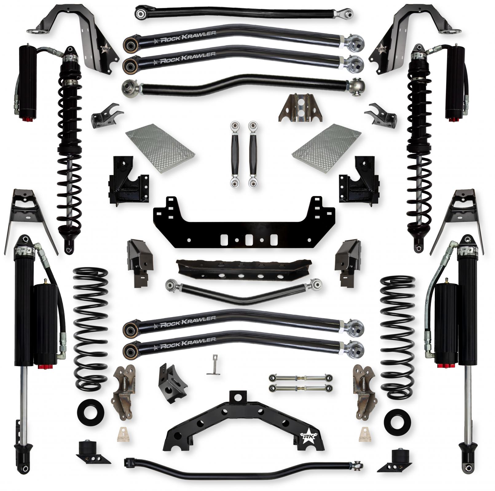 The Rock Krawler 3.5 X - Factor X2 Coilover Long-Arm System is specifically designed for Wrangler owners who want to push their vehicle to its limits with hard core rock crawling. The term No-Limits comes from the inclusion of our front sway bar links specifically designed for use with the factory electronic sway bar disconnect feature found standard in your Rubicon Wrangler!