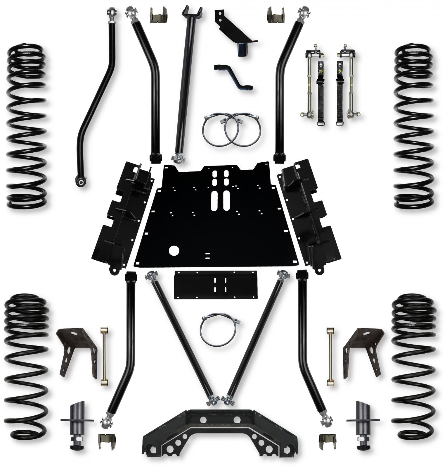 Of course, these systems come with our technologically advanced and tuned Triple-Rate Coils Front and Rear. No one can beat this combination of cross over angles, ground clearance gains, ride quality, tuned suspension performance, durability and our abuse proof lifetime warranty on all hard parts.