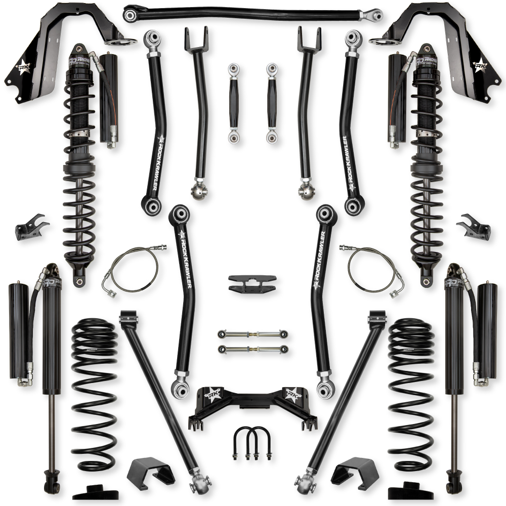 The Rock Krawler 4.5 Pro - X Coilover No-Limits Mid-Arm System is specifically designed Rubicon owners who want a complete system, bolt-in installation, and some of the best articulation of any mid-arm kit on the market. Our system proves its durability and off-road performance every time you hit the streets or trail!