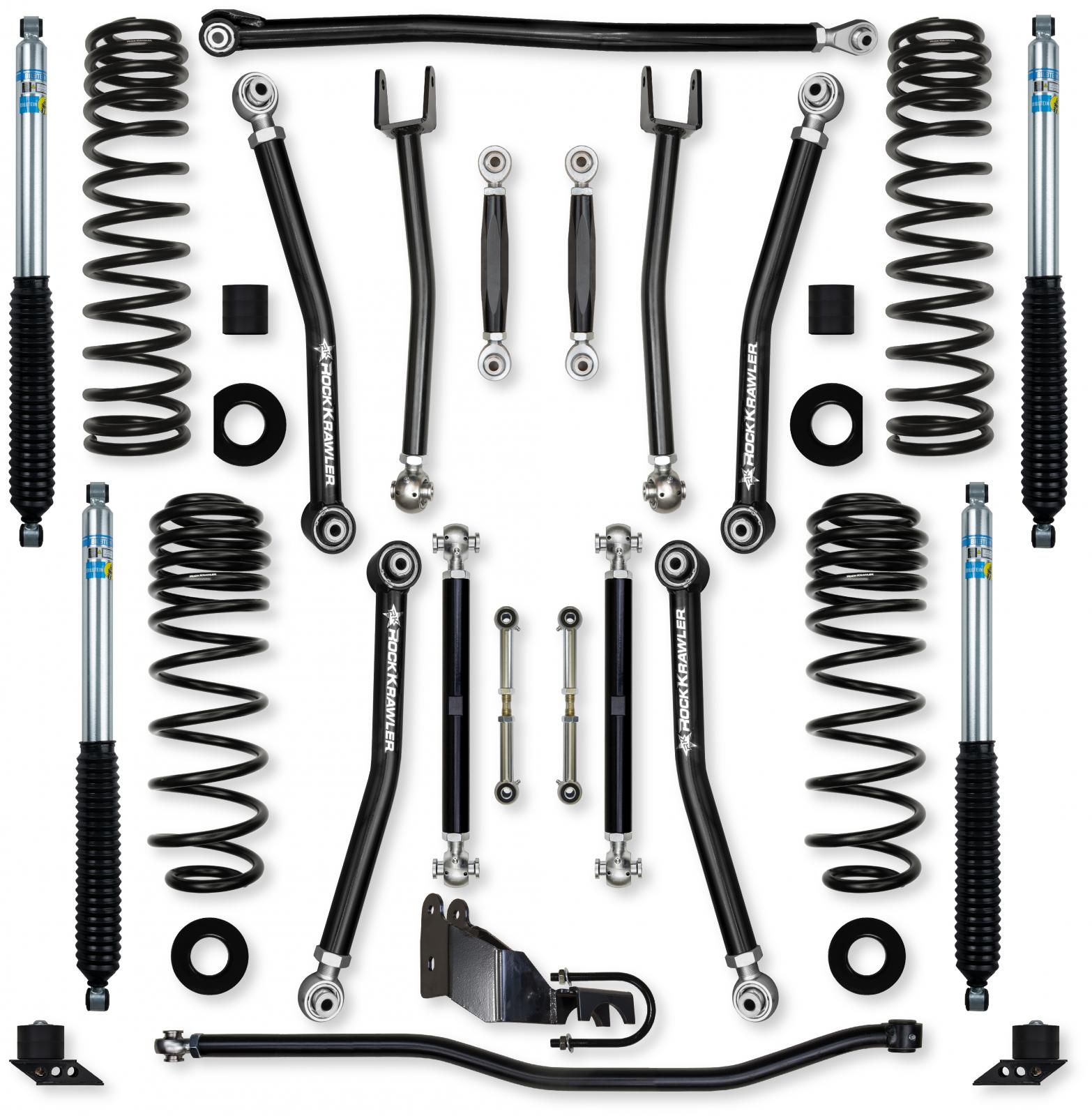 4.5 Inch X-Factor No Limits Mid-Arm Suspension System for Jeep Wrangler JLU 4XE Models Comp Stage 1 With Bilstein Shocks Rock Krawler