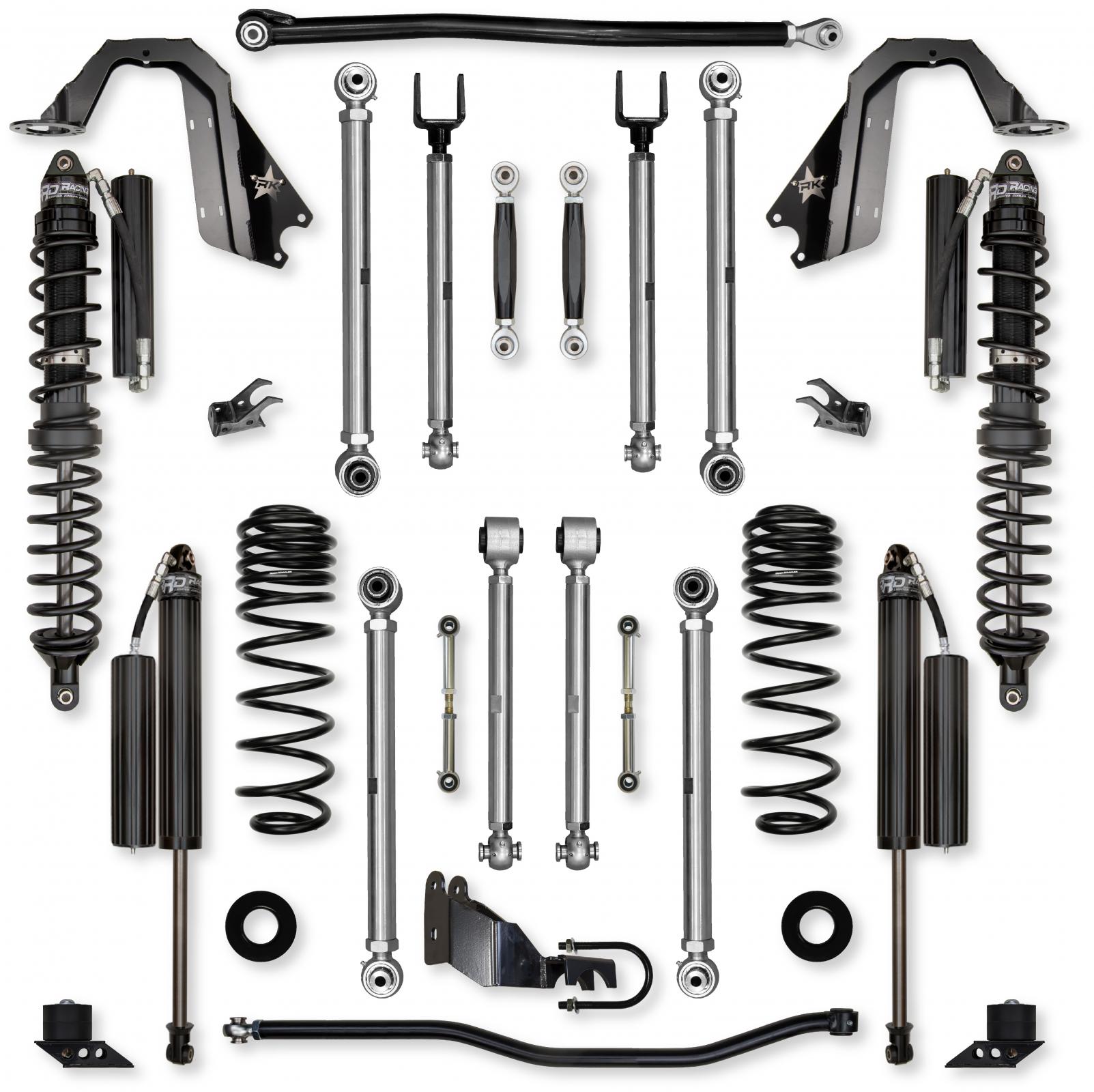 The Rock Krawler 4.5 X-Factor Pro Coilover No-Limits Mid-Arm System is specifically designed for Rubicon owners who want a complete system, bolt-in installation, and the best articulation of any mid-arm kit on the market. All 8 control arms are made from solid 7075 Aluminum, and come standard with all benefits of X-Factor built right in.