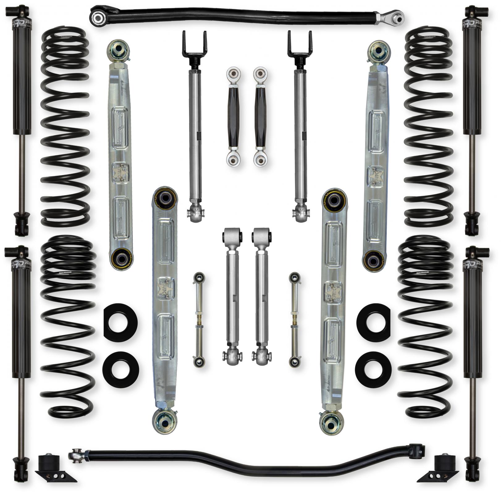 The Rock Krawler 4.5 X-Factor Pro Elite No-Limits Mid-Arm 392 System is specifically designed for 392 Rubicon owners who want a complete system, bolt-in installation, and the best articulation of any mid-arm kit on the market. The lower control arms are our signature PB+J (Pure Beef and Jealousy) mid-arms machined from 2 inch x 3 inch billet 7075 Aluminum.