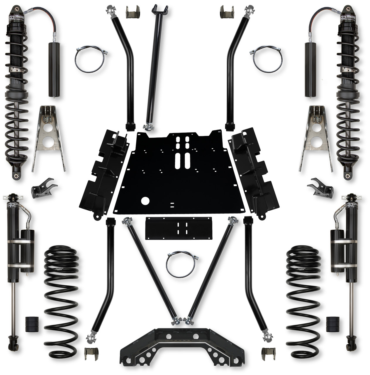 • Excellent Highway Ride and Handling High Misalignment Lower Control Arms Tuned Triple-Rate Coil Springs Front and Rear Independent Front 3 Link Geometry Double Triangulated Rear 4 Link Geometry Pro Front Sway Bar Disconnects Upgradeable to Coilovers, Stretch Systems, or Rockzilla