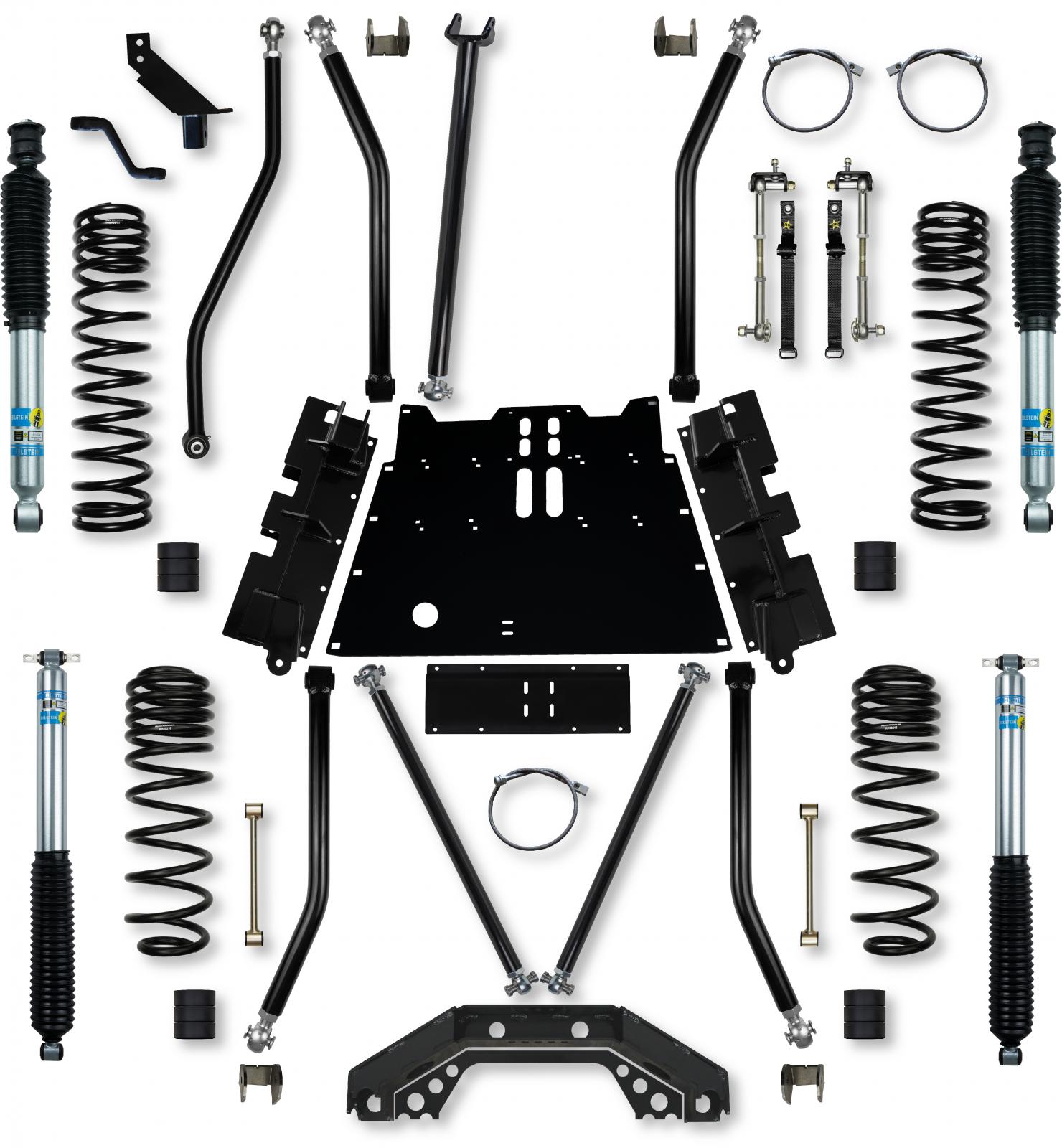 - Excellent Highway Ride and Handling High Misalignment Lower Control Arms Tuned Triple-Rate Coil Springs Front and Rear Independent Front 3 Link Geometry Double Triangulated Rear 4 Link Geometry Pro Front Sway Bar Disconnects Upgradeable to Coilovers, Stretch Systems, or Rockzilla