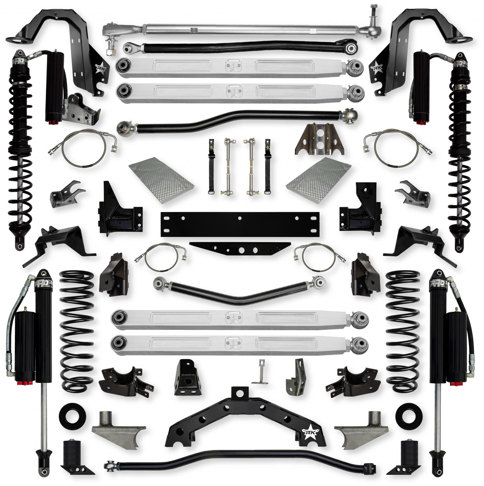 The Rock Krawler Suspension 4.5 X - Factor X2 6 Stretch Pro Elite Coilover Long-Arm System is the ultimate in compromise between daily driver/hard core off-roader. Pro derives from having a set of PB&J (Pure beef and jealousy) Billet aluminum lower control arms.