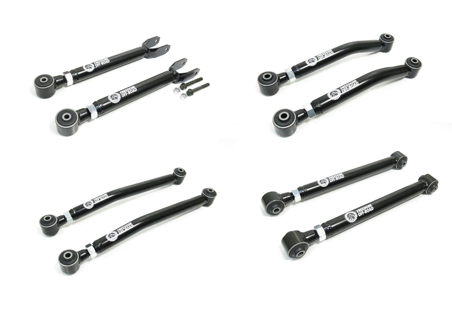 Adjustable Front Upper + Lower and Rear Upper + Lower Control Arms For 0-4.5 Inch Lift 07-18 Wrangler JK Freedom Off-Road