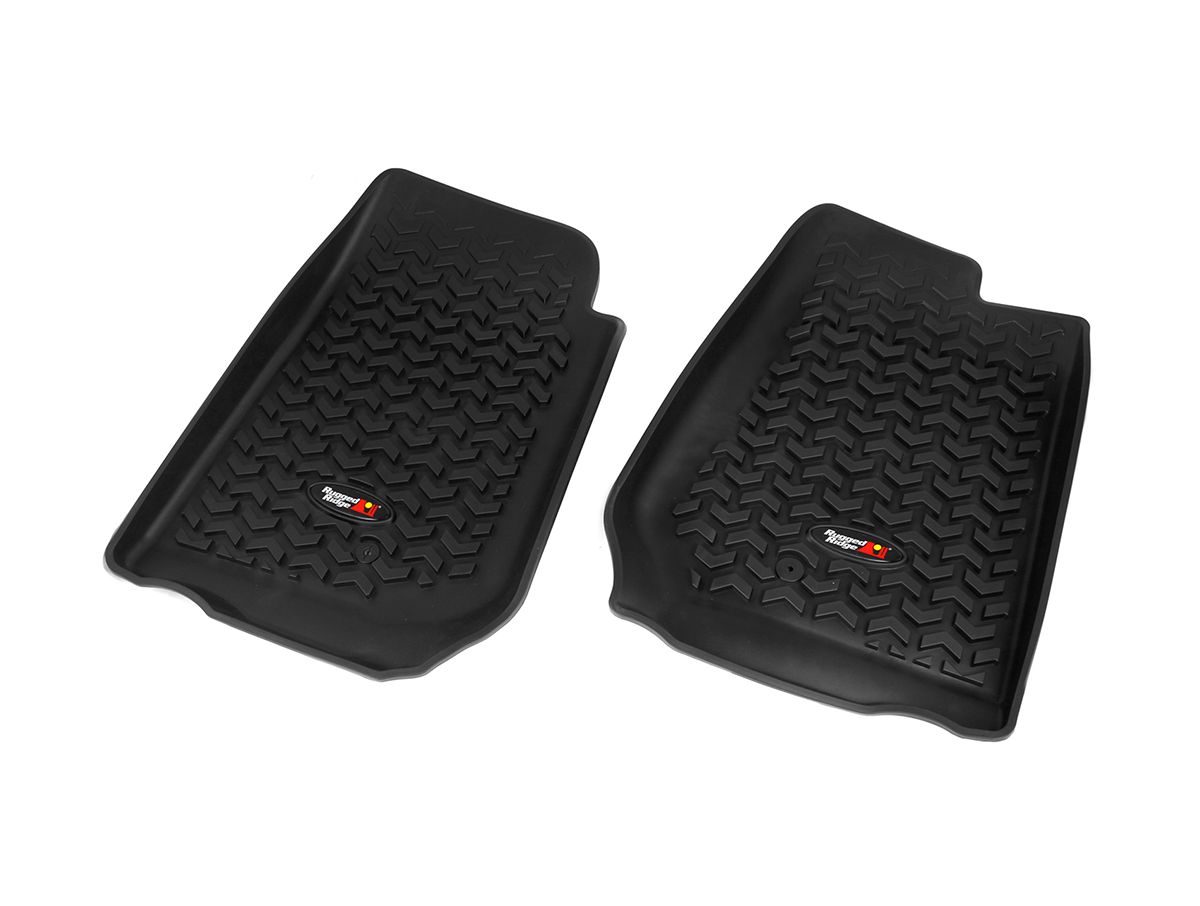 Need an affordable solution to keep the cabin floors of your Jeep looking factory fresh Try Rugged Ridges All Terrain Floor Liners! Made of a durable OE-quality thermoplastic material that can withstand the rigor of daily abuse, each liner is perfectly contoured to your vehicles floor for precise secure fitment (floor hook attachment where applicable).