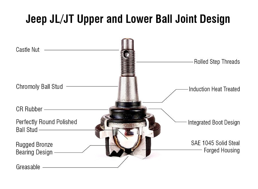 Apex Chassis Heavy Duty Front Upper Ball Joint, Knurled 18-21 Jeep Wrangler JL JLU/Gladiator JT Apex Chassis