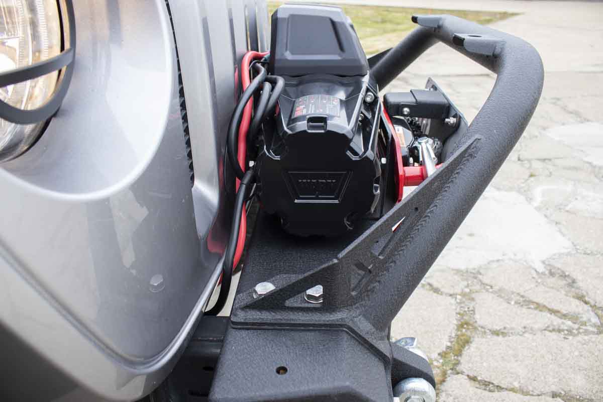 Make your Jeep the ultimate expression of yourself with this modular, frame tight, stubby front bumper. It offers 4 different ways to display your ruggedness while offering the full utility of a full-width bumper. Full Bull Bar, Stinger, D-rings, or bumper delete. The choice is yours!