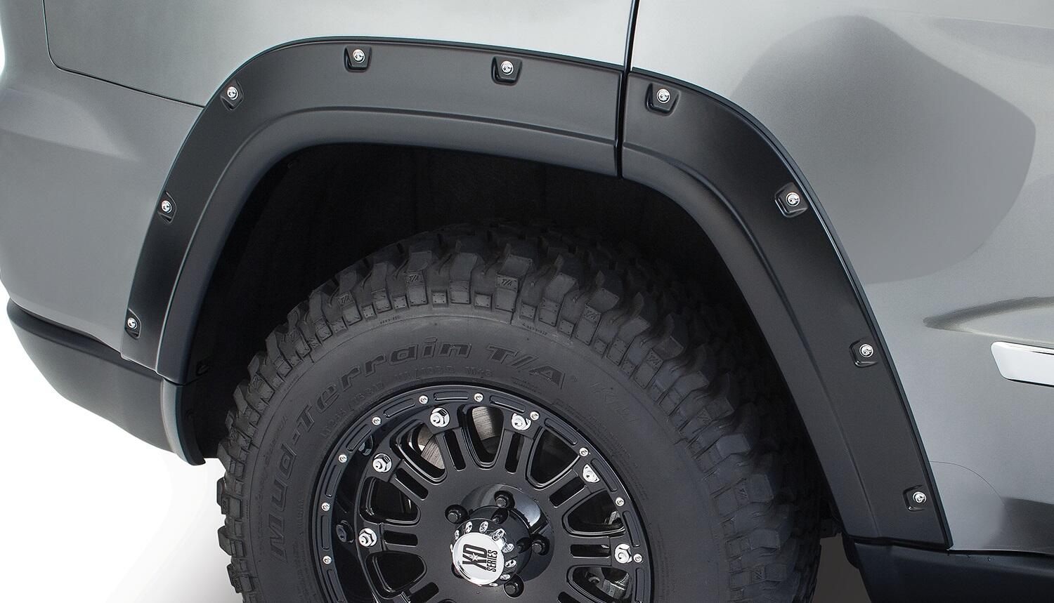 Black Pocket/Rivet Style Smooth Finish 4-Piece Fender Flare Set For 2011-2016 Jeep Grand Cherokee (Excludes SRT8) Bushwacker