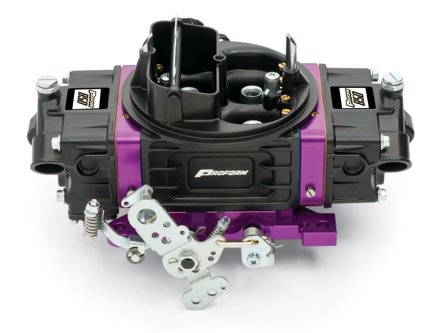 The PROFORM Black Street Series Carburetors include a Black Diamond coating for enhanced fuel cooling. Each carburetor is hand assembled and tested in the U.S.A. A ton of premium features are included with this ready-to-run carburetor like billet aluminum and cast aluminum components, fully adjustable air and fuel metering system, and refined tuning features that optimize fuel induction. Each street carburetor features billet metering blocks with a street performance calibration developed for todays high performance engines. Four corner idle is standard on these mechanical secondary carburetors, which helps fine tune the idle to aggressive camshaft profiles. Changeable idle feed restrictions expand the idle adjustment capabilities. Fine tuning is accomplished by simply changing air bleeds not opening calibration restrictions with a drill bit. Like all PROFORM carburetors, service parts are readily available however, should you not find PROFORM service parts, our carburetors are compatible with any modular carburetor service parts available at a local parts store or retail outlet. The billet throttle body for superior strength, coupled with precision throttle shafts to ensure long term performance. All PROFORM carburetors have easy access adjustable secondary air flow. Other carburetors may require special tools or removal of the carburetor to accomplish this simple adjustment. Complete with high quality, lightweight die-cast aluminum fuel bowls with fuel level windows for quick reference. Float level changes do not require removal of a sight plug with the risk of fuel spilling. Bowls come equipped with 3/8 inch inverted flare fuel inlet fittings and will accept all conventional dual feed fuel lines compatible with other four barrel carburetors. Sold Individually.