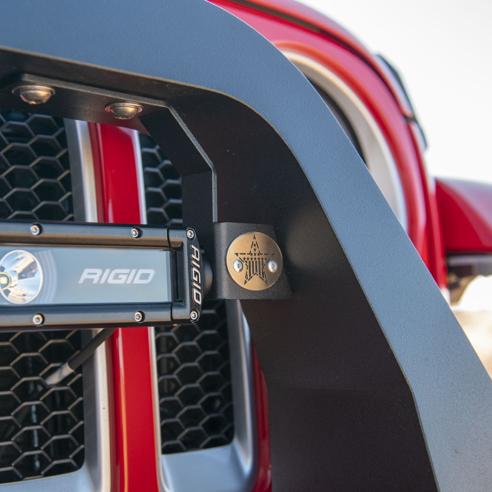 Rock Slide Engineering's aluminum Light Bar Brackets are the best option to mount your 20-inch light bar. We use a state-of-the-art automated powder coat system to for a textured black topcoat. The mount is easily adjustable and will fit most 20-inch light bars. Easy, no drill installation!