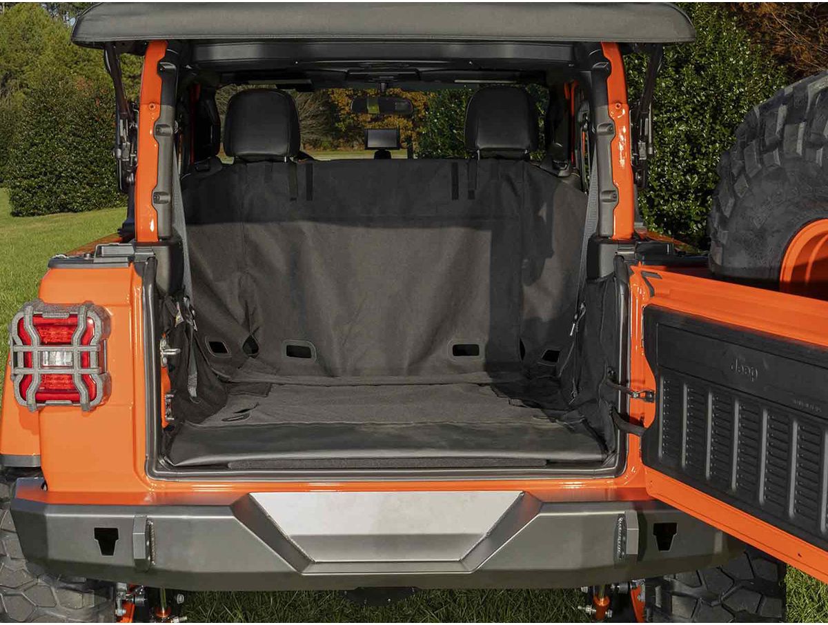 A versatile Jeep deserves versatile accessories. Keeping you on-the-go with ease, the rear Configurable Cargo Cover (C3) offers complete protection for the rear cargo area of your Jeep Wrangler JL, keeping your interior pristine throughout your daily use by protecting your carpet and plastic trim from damage, scratches, pet claws, dirt, and other debris.