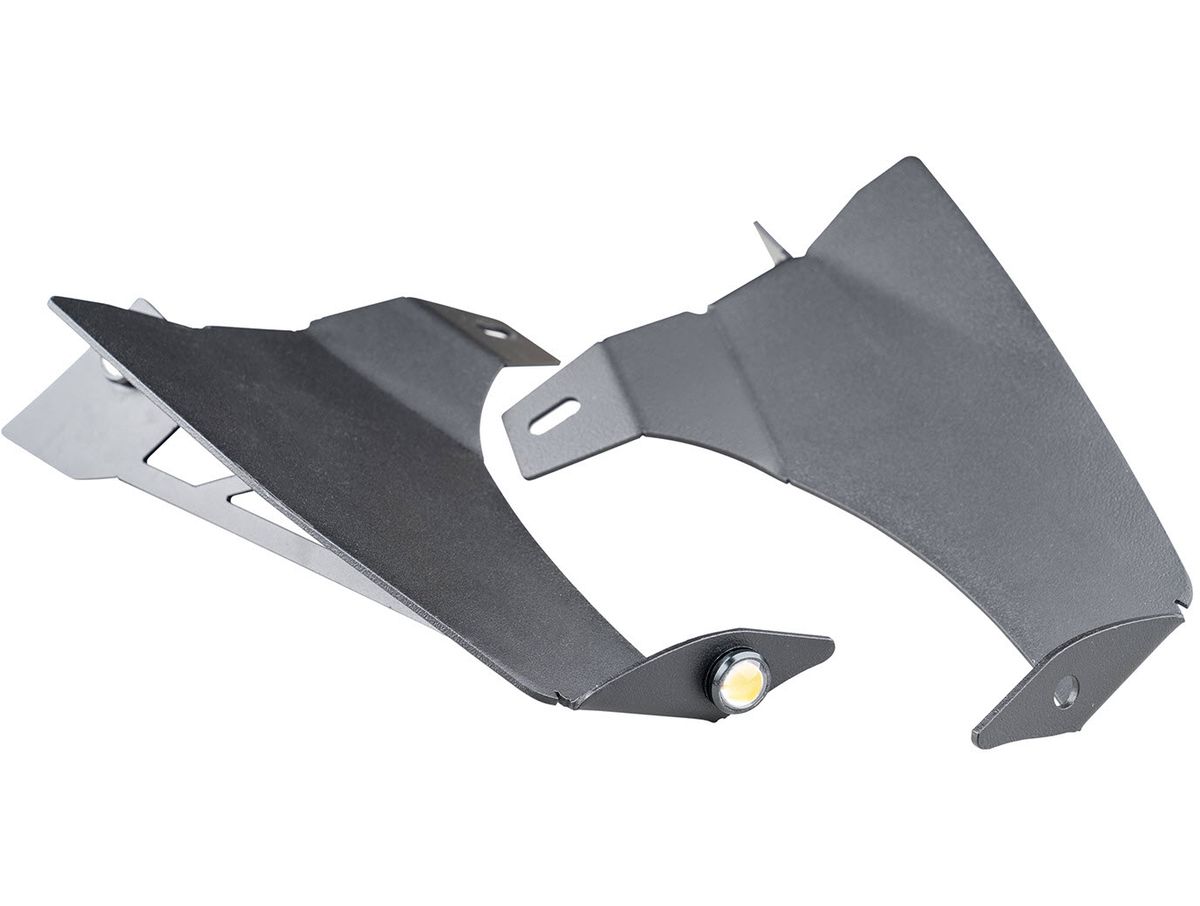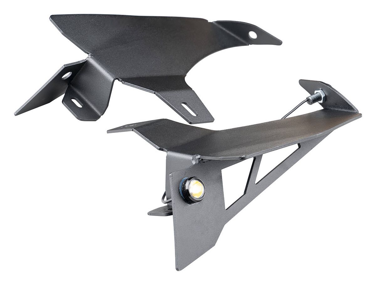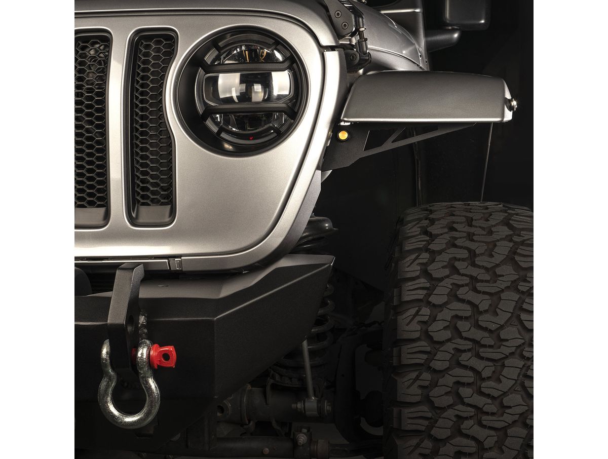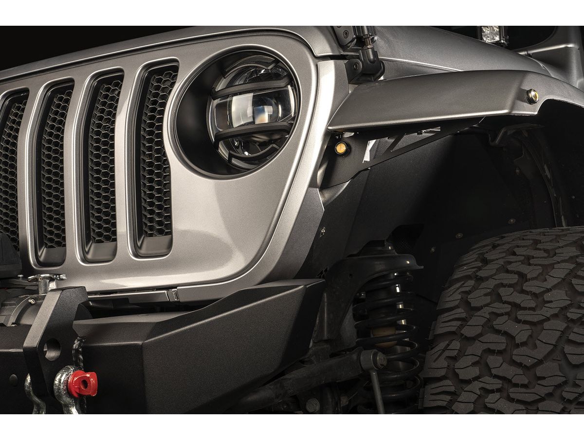 Sturdy steel chop brackets install easily and lend support for the front of the factory fender flare, adding a fearless, aggressive new look. And since Jeeps don't live solely off-road, we've built-in bullet-style side marker and turn signal lights to ensure safe on-road operation too.