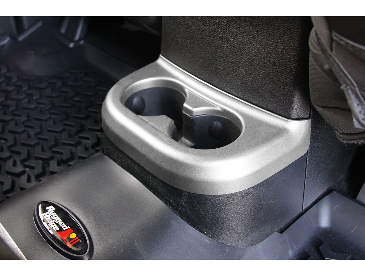 Cup Holder Trim Brushed Silver 2nd Row 11-18 Jeep Wrangler JK Rugged Ridge