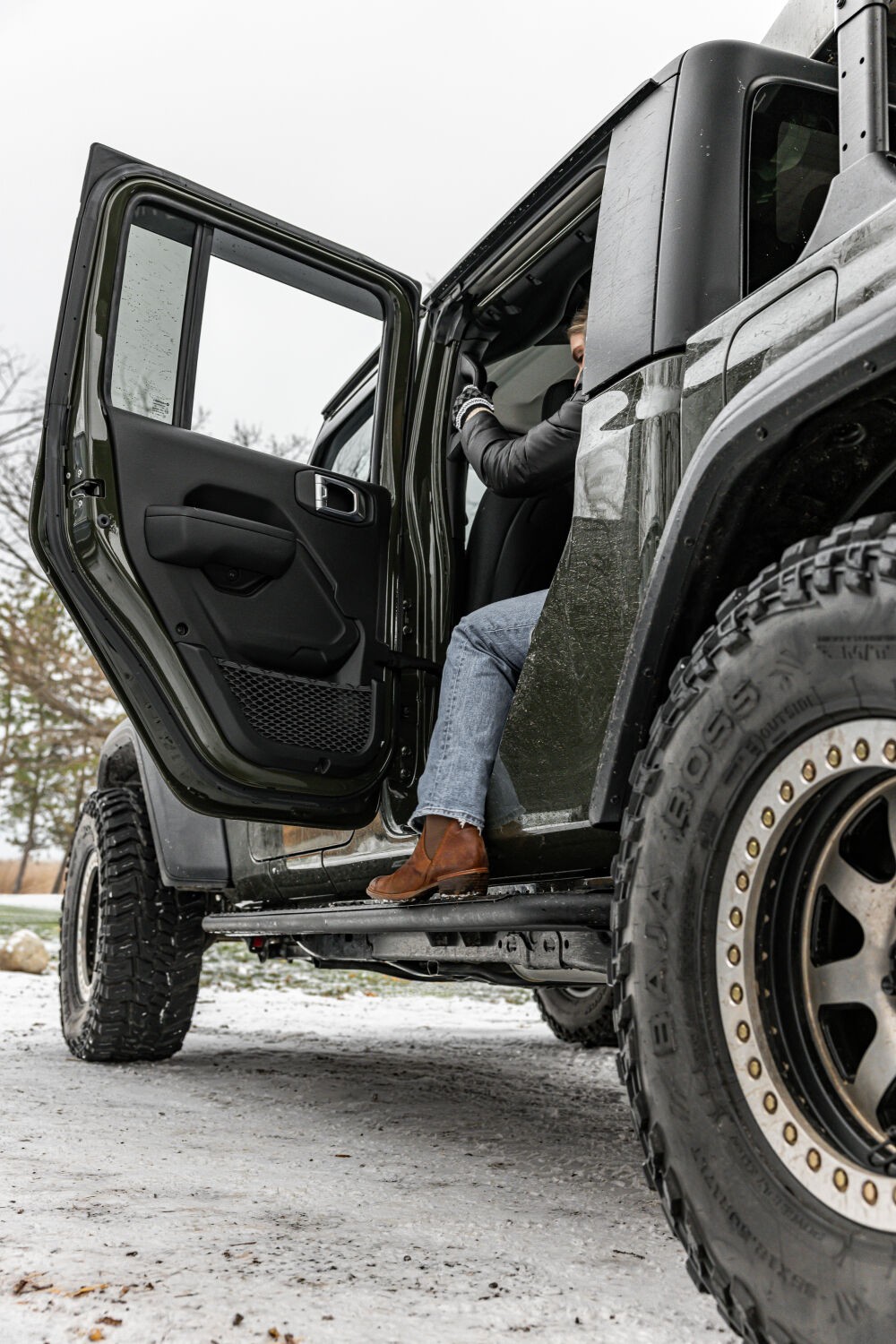 - Full length slider with outer rub rail and removable full length steel step