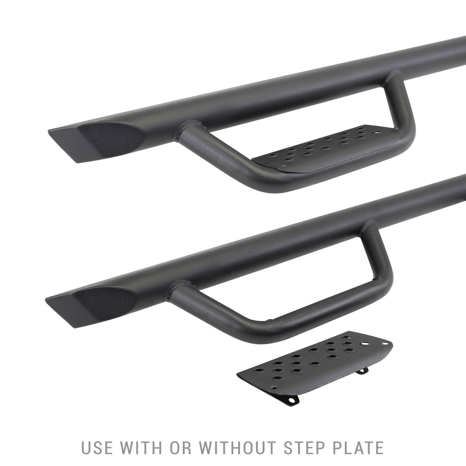 - One-piece main bar made of fabricated steel, steel step pad is removeable