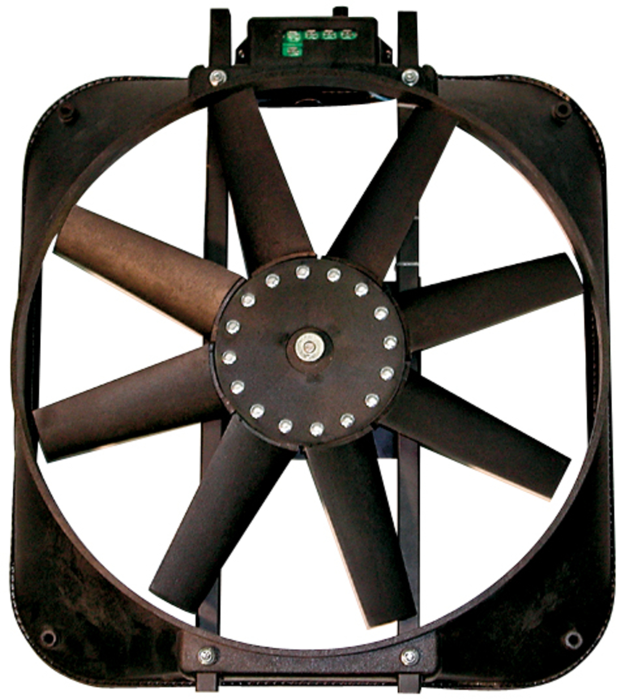 Your stock fan robs your engine of up to 15 or more horsepower! Replace it with a rugged, universal-fit fan equipped with an adjustable 180-240 degree F thermostat. Bolts to your radiator supports using sturdy brackets. With a heavy-duty motor, highly angled blades, and 15 inch diameter, this unit pulls up to 2,800 cfm of air, cooling vehicles with up to 250+ HP without air and 220+ HP with air. 12 inch, 14 inch, and 16 inch fans are reversible, mount to front or back of radiator. Ultra-thin design to fit cramped locations. Reinforced glass filled polypropylene blade and plastic housing for minimized weight. Nylon tie mounting kit included. Nominal fan size is based upon approximate overall diameter. Sold as a kit.