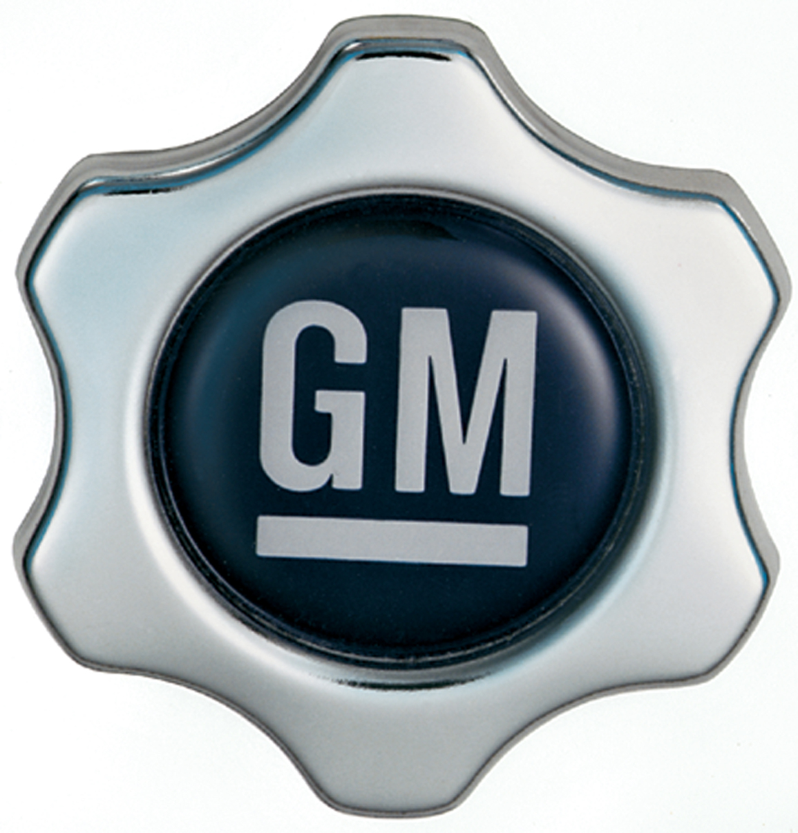 - Chrome Plated Finish With White-On-Blue GM Logo