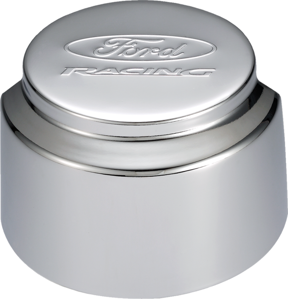 - Chrome Plated Finish With Raised Ford Racing Logo On Top