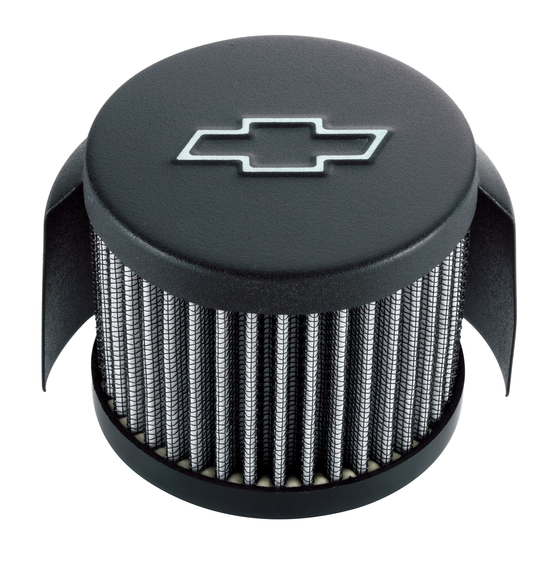 Engine Valve Cover Breather Chevy Logo Push-In Style w/Hood Black Crinkle Chevrolet Performance Parts