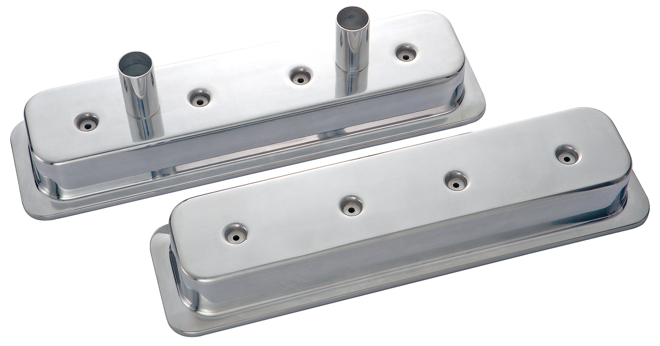 Engine Valve Covers Circle Track-Center Bolt Style Die Cast w/Tubes SB Chevy