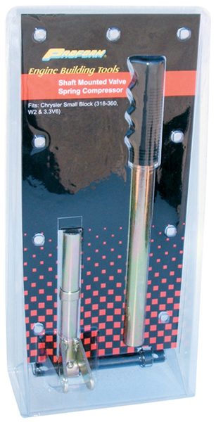Heavy-duty shaft mounted spring compressor makes removing valve springs a snap while the cylinder heads are still on the engine. Bolt the tool shaft in lieu of the rocker shaft, place the feet over retainer, put the handle on and pull down. Affordable and easy to use! Sold individually.