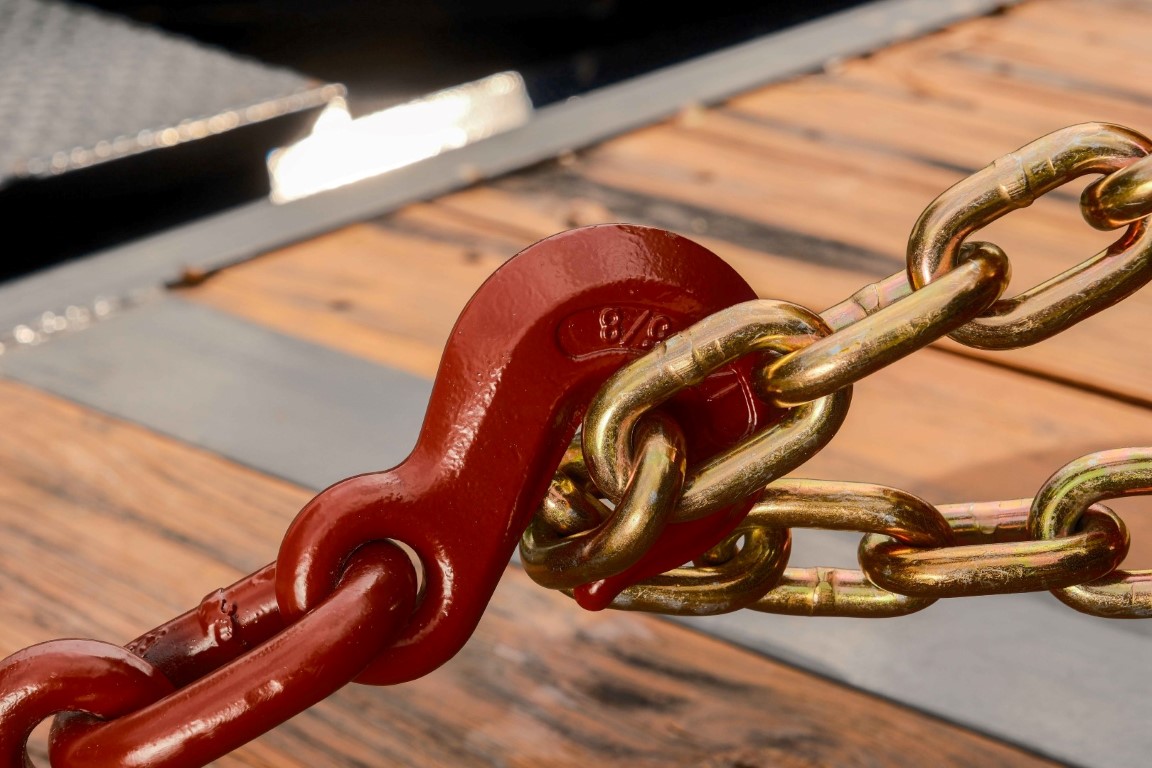 Made from heavy-duty forged steel, it features electro-welded links and forged eye bolts that have a zinc coating for corrosion resistance. The open-body design allows for the easy removal of debris such as dirt, mud, snow or ice.