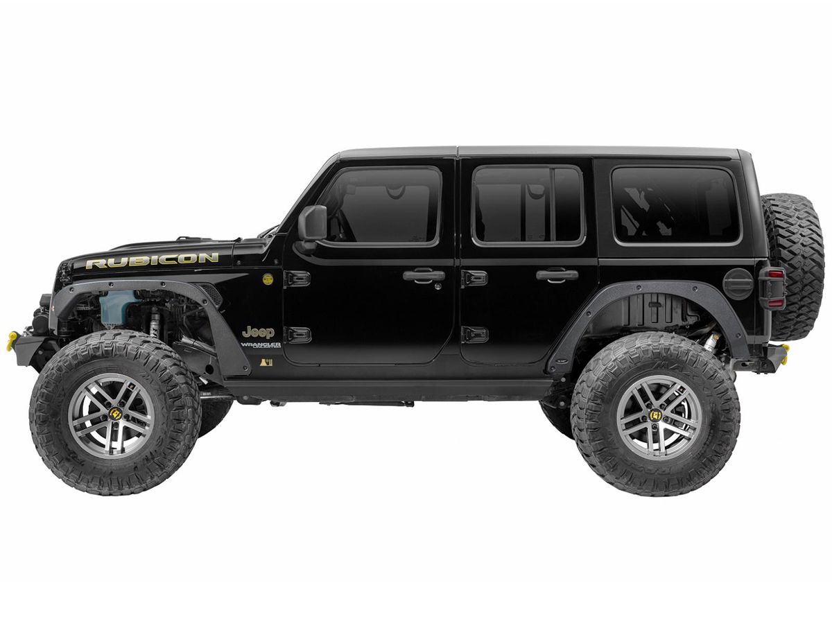 You'll find yourself wheeling with a whole new level of confidence. Available with a rugged matte Black finish in pairs for Front, Rear and Full Sets. (If retained, some drilling and trimming of factory fender liner required)