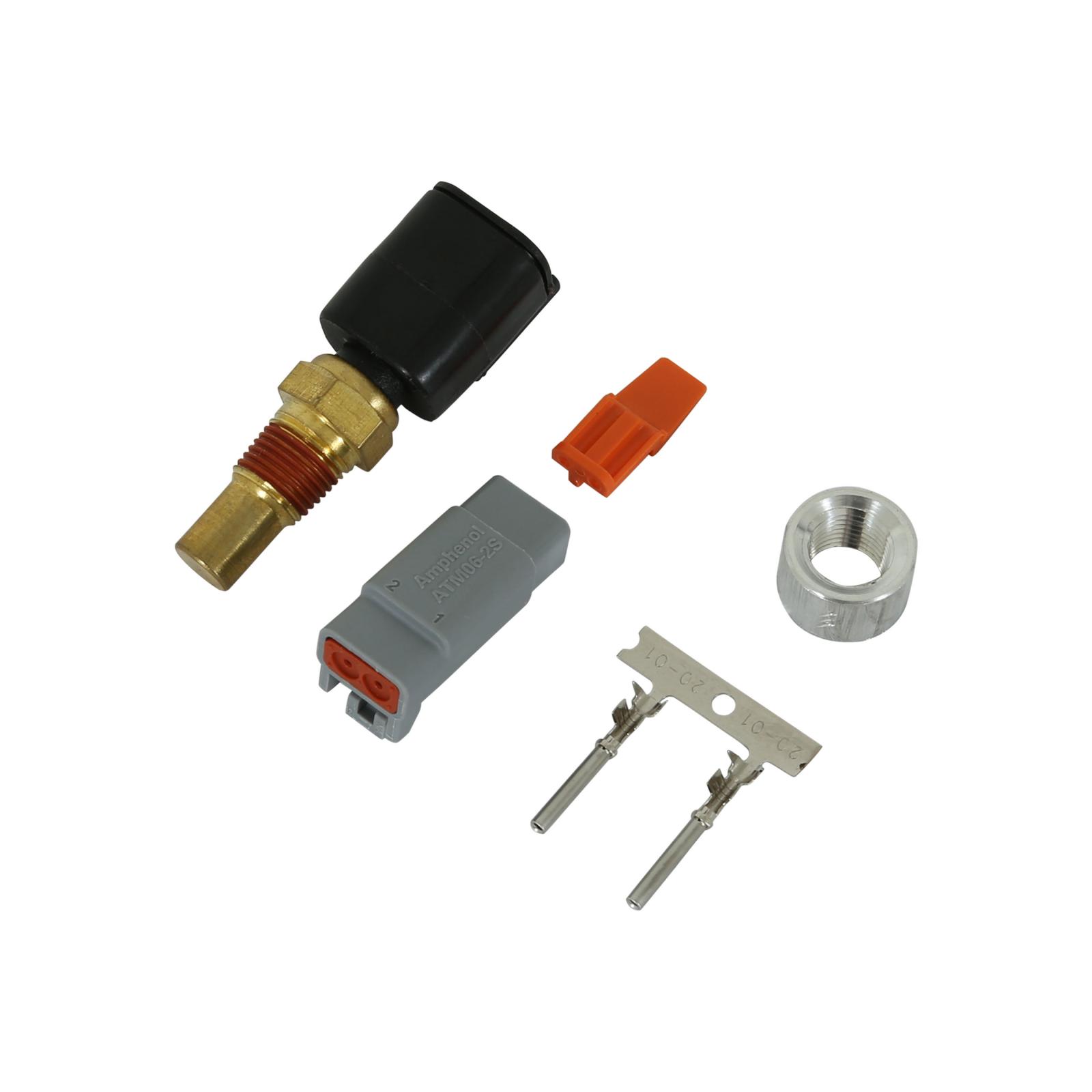 AEM offers 1/8 inch NPT DTM-Style Connector(PN 30-2013), 1/8 inch NPT (PN 30-2012) and 3/8 inch NPT (PN 30-2011) water/oil temperature sensor kit.