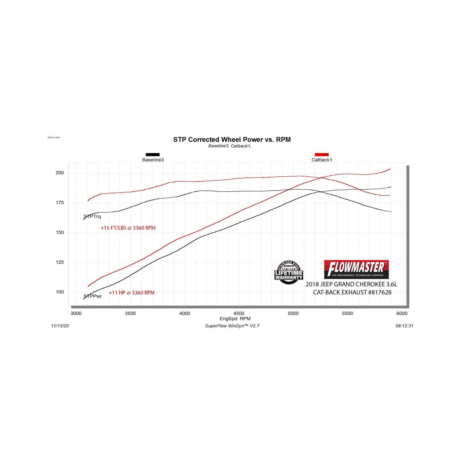 Force Ii Cat-Back Exhaust System Fits 2011-2022* Jeep Grand Cherokee (*2022 Grand Cherokee Wk Only) 3.6-Liter, Flow Fx Cat-Back 2.5 Inch Stainless Steel Exhaust System, Single Out Rear Exit Flowmaster