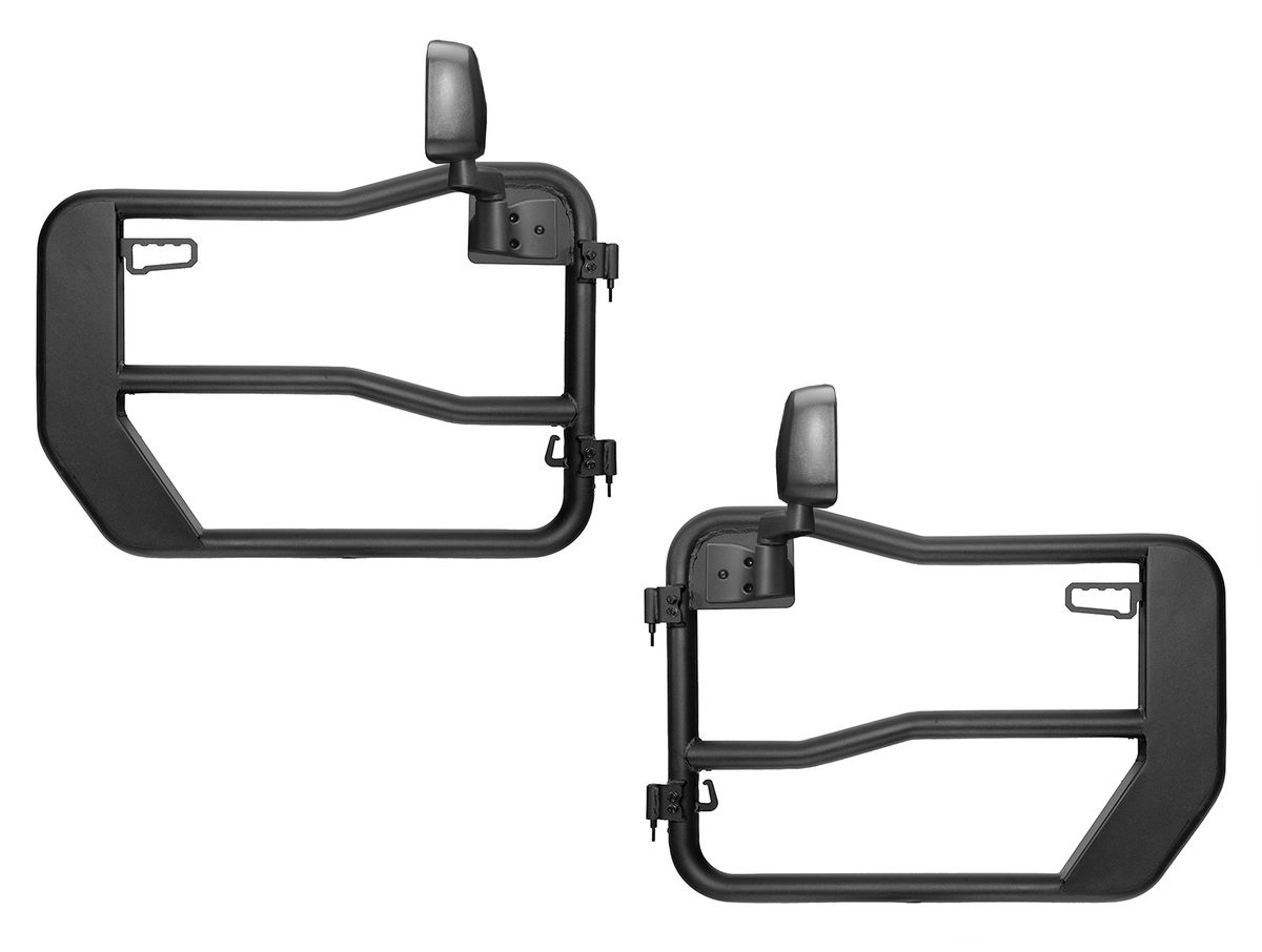 Constructed from trail-proven 50 mm OD steel tubing and fully welded for rugged, rattle-free performance whether you are on or off-road. Each door comes fully assembled with a secure rotary latching mechanism and factory-style hinge pins for a fast & easy installation.