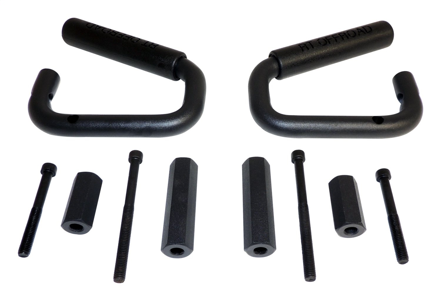 Features & Benefits:- RT Off-Roads Grab Handle Sets are a perfect and simple way of adding a hard-mounted handle to the driver and passenger area on a JK Wrangler. The heavy duty steel construction is superior to nylon, hook and loop fasteners, or thread to fail