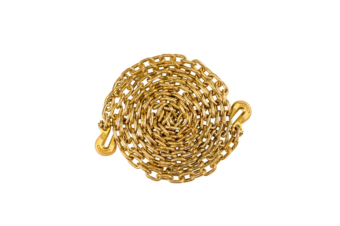 This chain is made from a heat-treated Grade 70 chain to withstand even the harshest conditions. The gold chromate finish offers corrosion resistance and allows DOT inspectors to easily determine the grade of chain being used.