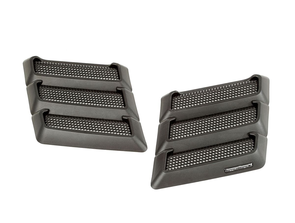 These Black plastic Rugged Ridge Performance Vented Hood Inserts are the perfect add on accessory, offering an aggressive style for your vented hood. Injection molded for a precise fit, these inserts promote proper airflow into your engine compartment and mount to the Performance Vented Hood (17759.01), JK or TJ factory hood.