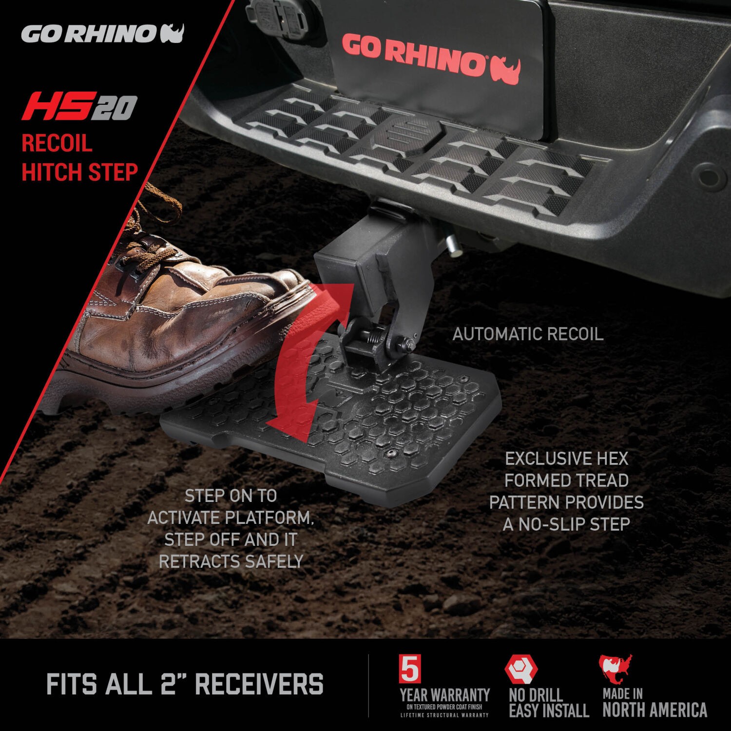 The RB Series makes the perfect accessory to the popular RB and RB Slim running boards and comes in two matching finishes. The modern HS Series ranges from the spring loaded, flip down step of the HS-20 to the modern, minimal HS-30 and the rugged, skid plated HS-10. With tubular classics like the Rhino'step, Dominator Series, 360 Series and 4 Inch Oval Series, Go Rhino has continued to show why it is the industry leader in hitch steps.