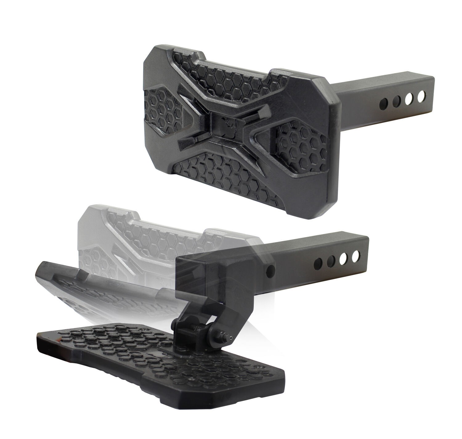 A Go Rhino hitch step provides easy rear step access to a truck bed, SUV and they offer protection to vulnerable, molded bumpers in the event of a collision. The Go Rhino hitch step family has a lot of styles from which to choose.
