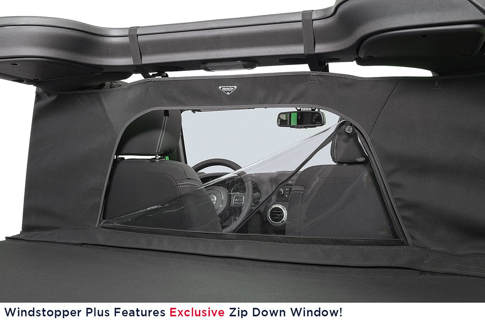 Note: Due to the factory location of the roll bar, your backwards and reclining front seat adjustment may be hindered while using the WindStopper Plus. This normally affects front seat adjustment for people 5 foot 10 inch or taller.
