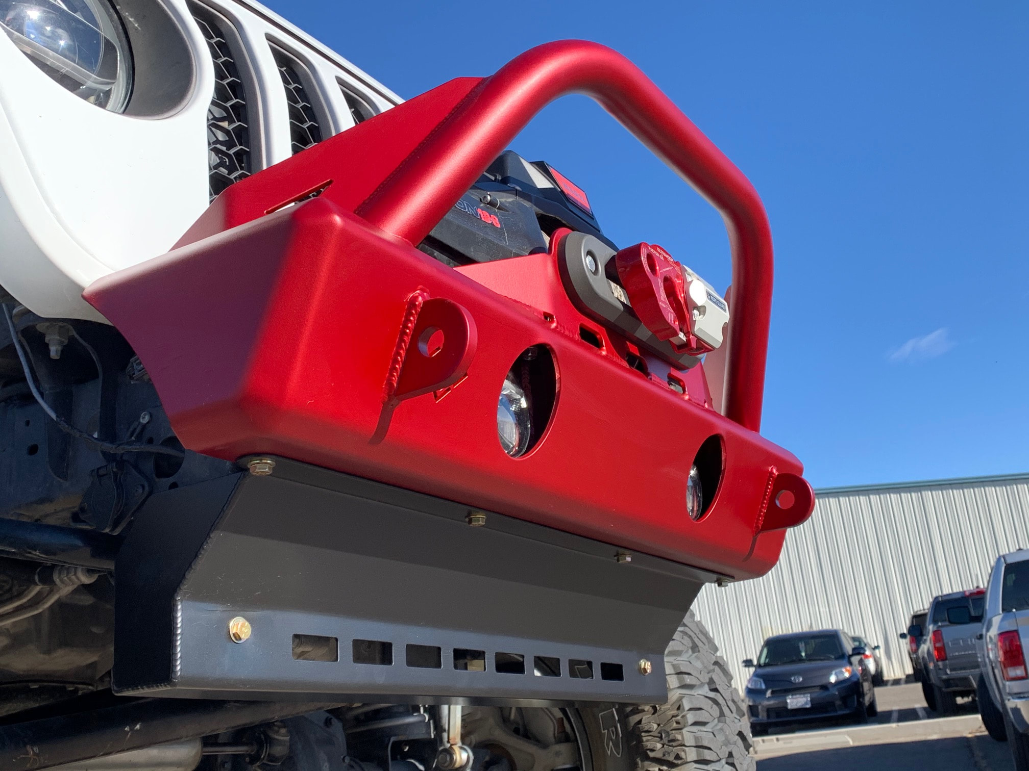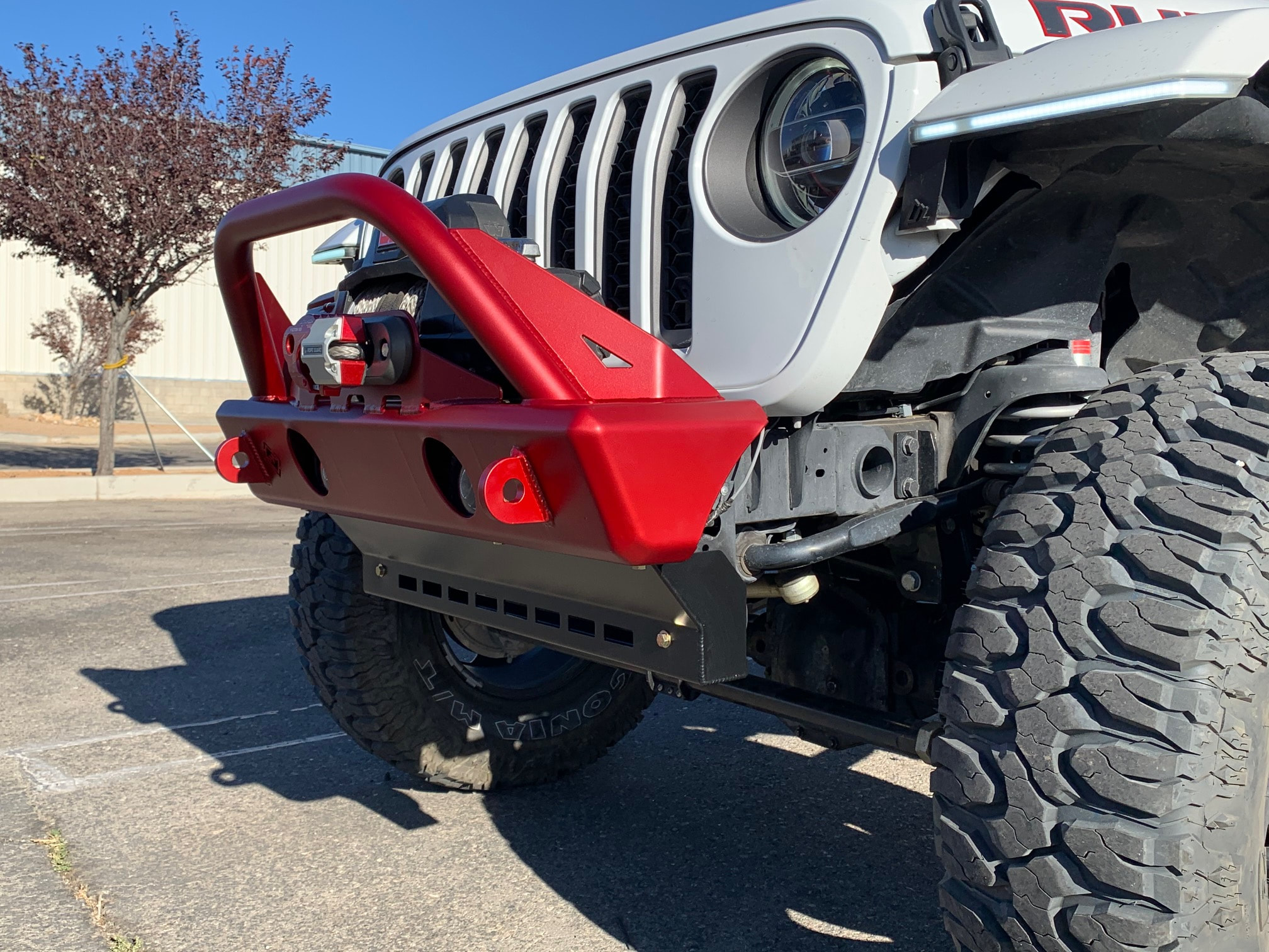 This skid is designed to work specifically with your JL. JLU, or JT Trailhead Series front bumper whether its a stubby or a mid width. It mounts across the bottom of the bumper as well as to the frame horns that drop down from the chassis.