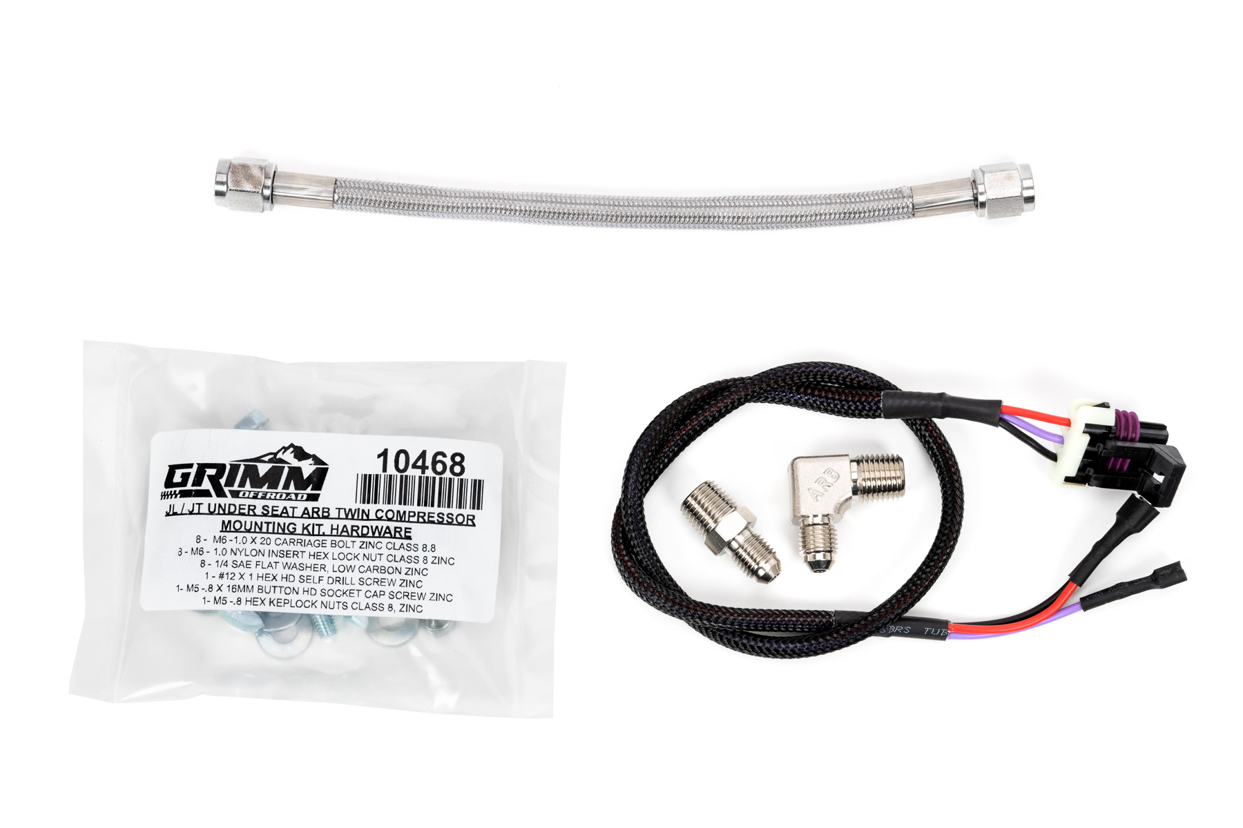 Grimm OffRoad's compact mounting bracket kit solidly mounts ARB's Twin Air Compressor under the front seat of your Jeep Wrangler JL/JLU, or Gladiator JT. This is the most functional and integrated kit on the market. The included bulkhead and wiring harness allows convenient access to the on/off switch and air chuck to the front seat. By keeping the compressor inside the cab, it is kept away from the elements.