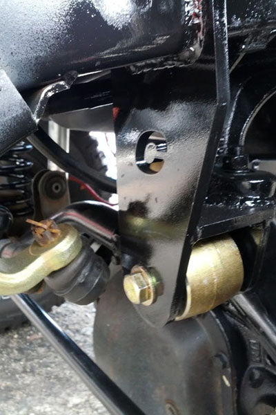 The bracket bolts into the OEM location for alignment purposes Only, and needs to be fully welded for superior strength over a bolt on design bracket. This bracket Not Only minimizes track bar angles, but puts the bolt in double sheer adding strength. By using the track bar in double sheer you eliminate any chance of over flexing the joint.