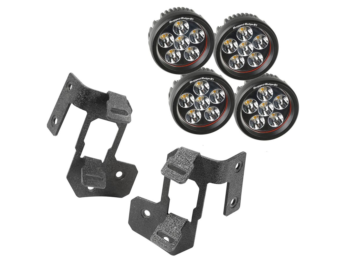 This textured Black A-Pillar light mount kit from Rugged Ridge includes a pair of light mounts and four 3.5- in. round LED lights. Each kit provides a new option for added visibility during evenings on the trail.